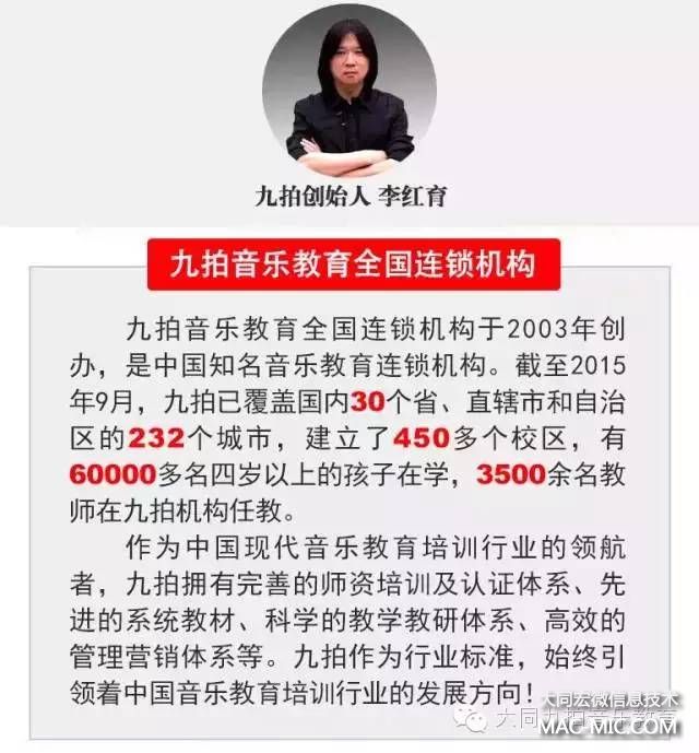 九拍教育科技集團由李紅育老師于2003年創(chuàng)建,2015年九拍音樂教育全國連鎖強勢進駐大同,總部設(shè)立在天津市南開學府創(chuàng)新園區(qū)。2006年,注冊成立了天津市九拍文化藝術(shù)發(fā)展有限公司,主要業(yè)務為音樂教育培訓、樂器產(chǎn)品銷售及文化交流活動。