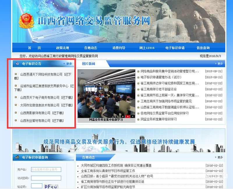 太原新聞網(wǎng)訊  10月12日,山西省工商局發(fā)布消息,《網(wǎng)絡(luò)經(jīng)營(yíng)者電子標(biāo)識(shí)申請(qǐng)管理辦法(試行)》已于10月1日實(shí)施,經(jīng)營(yíng)性網(wǎng)站須在醒目位置放置電子標(biāo)識(shí),使消費(fèi)者能辨識(shí)網(wǎng)絡(luò)經(jīng)營(yíng)者的真實(shí)身份。
