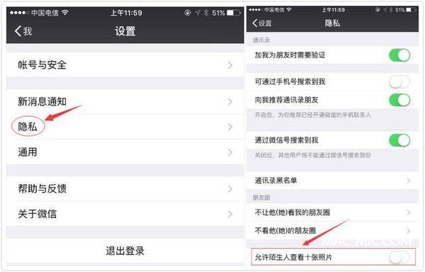 點擊[我]—[設置]—[隱私],拉至頁面最下方,找到[允許陌生人查看十張照片]功能,滑動關閉它。