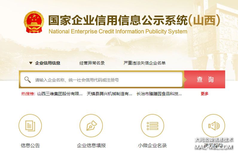 宏微信息技術(shù)作為專業(yè)化網(wǎng)站建設(shè)服務(wù)提供商,多年來一直關(guān)注企業(yè)建站和信息化服務(wù)進程,山西省企業(yè)信用信息公示系統(tǒng)上線以來,為企業(yè)注冊變更公示等帶來極大的便利,贏得了群眾的一直好評。不過在實際應(yīng)用過程中仍存在很多問題,諸如同時并發(fā)上線人數(shù)多,內(nèi)部工作人員經(jīng)常抱怨“網(wǎng)慢”、“沒網(wǎng)”等現(xiàn)象,最近幾天2018年7月在查詢企業(yè)信息時不斷宕機,出現(xiàn)卡死的狀況,影響使用效果,希望后續(xù)越做越好。