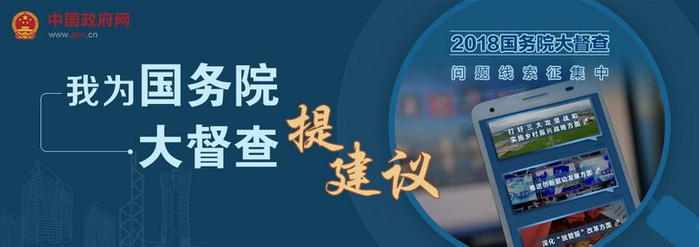為貫徹落實李克強總理關于“開門搞督查”的重要指示精神,配合開展2018年國務院大督查,從7月10日至9月10日,國務院辦公廳開展“我為大督查提建議”活動,面向社會公開征集政策措施不落實、政府管理服務不到位、有關部門和單位不作為慢作為亂作為等問題線索以及相關意見建議。